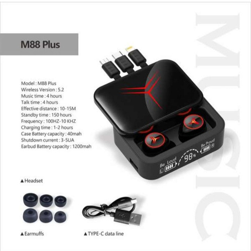 امروزه به دلیل مشغله کاری زیاد نیاز ما به وسایل دیجیتالی هر روز بیشتر می شود کالاهایی که چند ویژگی باهم داشته باشند یک محصول کاملا جذاب به شمار می رود. ایرپاد-پاوربانک M88 Plus یکی از این محصولات است که هم یک هندزفری باکیفیت در عین حال یک پاوربانک به تمام معناست که مجهز به سه نوع کابل جهت شارژ هم زمان گوشی یا تبلت و ... می باشد . ظرفیت باتری کیس این محصول 1200 میلی آمپرست که می تواند هندزفری ها را تا چند روز پرشارژ و همیشه در دسترس نگه دارد. تراشه بلوتوثی این هندزفری -پاوربانک از نسخه 5.2 بهره می برد.
